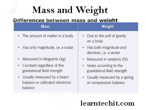One thing must be remembered that the measurement is not the same. As a result, we can’t use weight to mean mass. Weight is measured in Newton (N) and mass is measured in kilograms (kg).