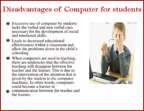The boundless information which provides computer has a negative impact on students and disadvantages unswervingly related to computer usage in institutions for higher eduthe cation.