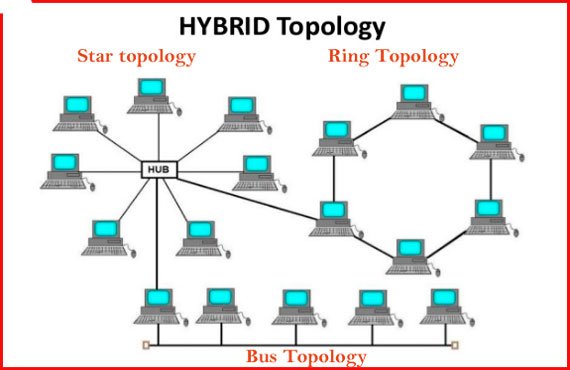 It’s a kind of network topology where two of more kinds of network topology are present, it is scalable and easily expandable topology. This network topology is reliable in nature but costly to implement.